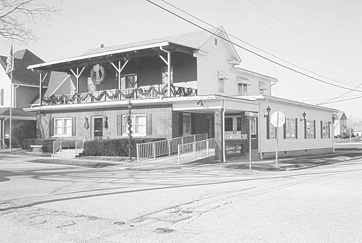 After Lee’s purchase of the funeral home, the name changed to Queen-Lee Funeral Home and associated with Ferguson-Lee Funeral Home in Bedford. The funeral home to this day is located at the same location in the small town of Shoals, Indiana. In 1990, extensive redecorating and structural changes were made. On December 1, 2016, Mr. Robert Lee and his wife Marjorie sold the Queen-Lee Funeral Home to Bedford residents, Philip M. and Amelia Thorne and Derek C. and Abby George, who currently own and operate the Ferguson-Lee and Queen-Lee Chapels.